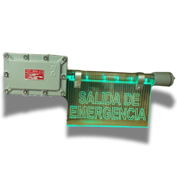 Artefacto autónomo de emergencia para áreas clasificadas con cartel de señalización luminoso. El mismo esta contenido en una envoltura antidelfragrante, iluminado en forma